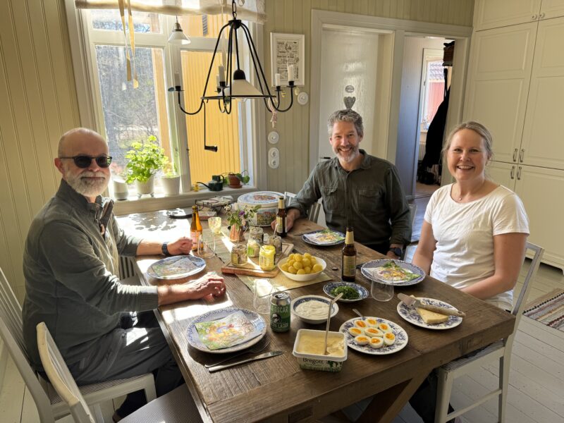 Förra gången jag var här (2022) så fanns det ingen motorväg mellan Cork och Killarney. Det gör det tydligen nu, så vi var snabbt och lätt framme hos mina svärföräldrar. Där möttes vi av stora famnen, glada leenden och en nästan färdiglagad lunch. Göte och Per ser ni här ovanför när de sitter och väntar några minuter medan Noreen ställde fram en jättegod ”Fish pudding”.