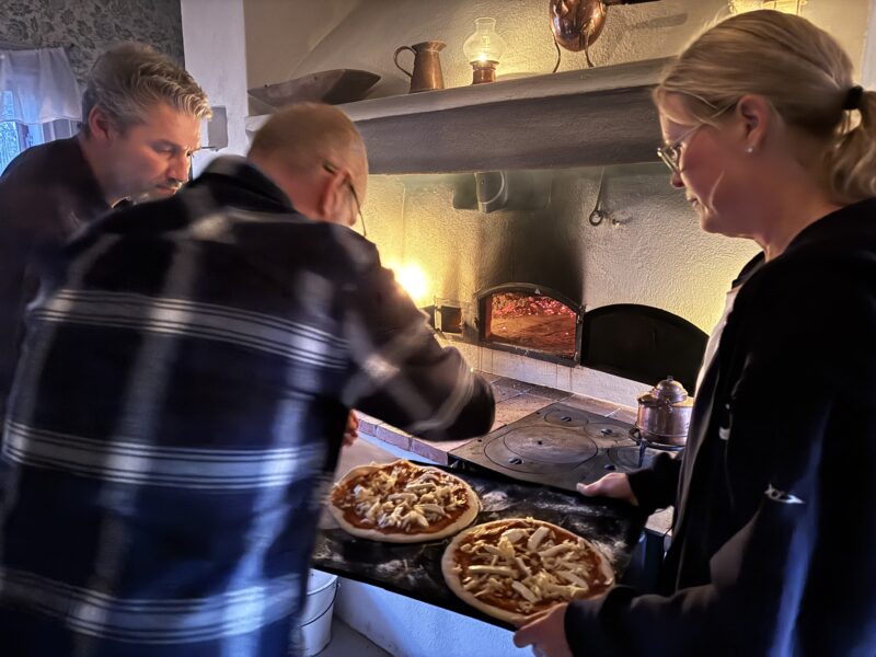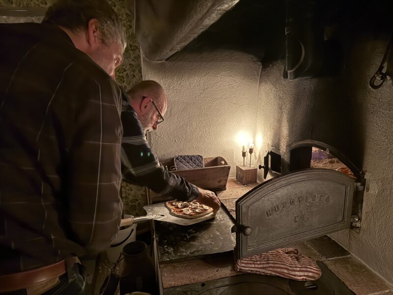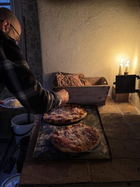 Kvällen spenderade vi sedan med trevligt umgänge runt köksbordet där det serverades räkcocktail med bubblor i glasen till förrätt, följt av den godaste ankan med potatisgratäng och kokta morötter som jag någonsin ätit. Middagen avslutades sedan med en jättegod äppelpaj med vispad grädde.