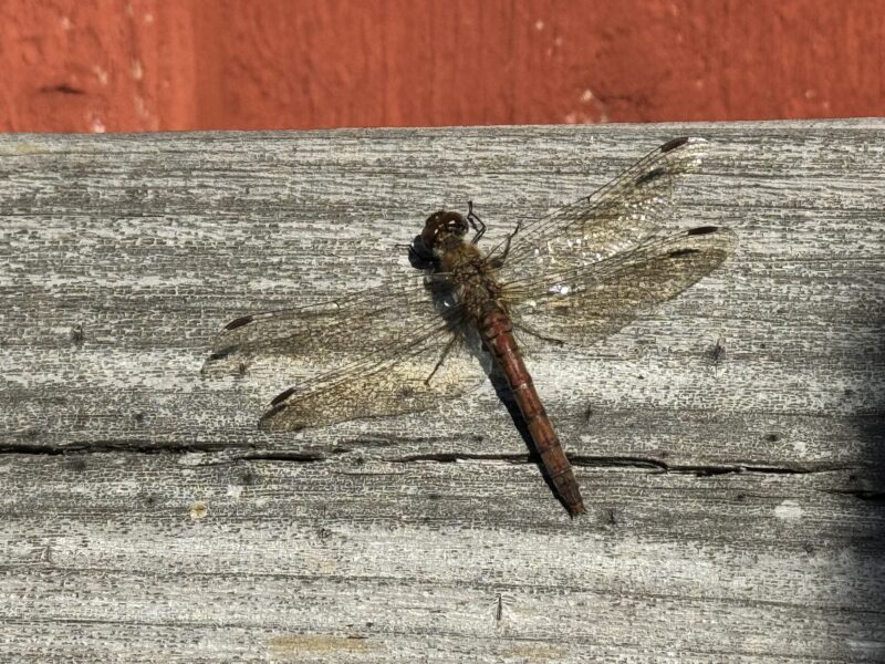 Jag fotograferade även en av väldigt många trollsländor som flög runt Victor medan han borstade.