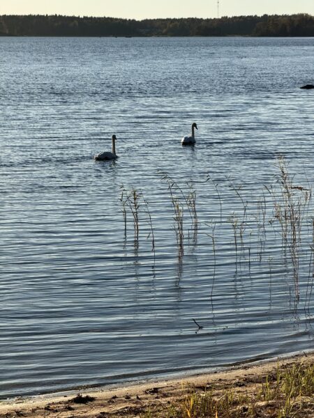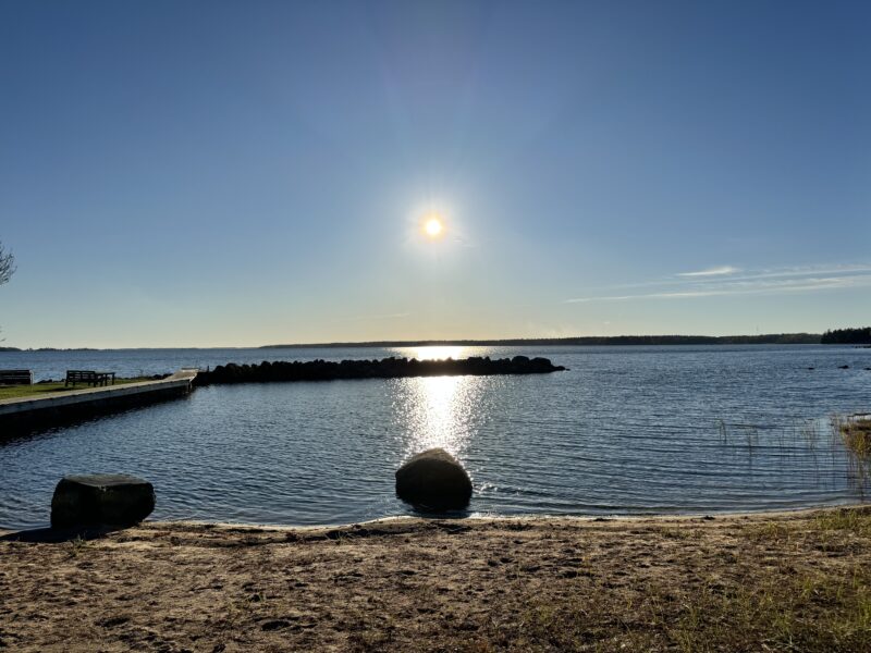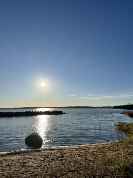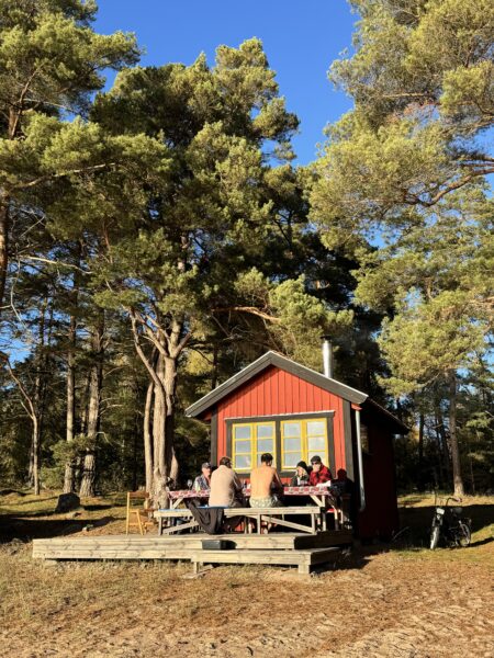 Vi fångade ju som tur var sms’et som jag fick av Jenny och gick ner till havet för att vara med grannarna. Jag bastade såklart inte (det är för varmt), men jag njöt av ett glas vin och sällskapet på altanen medan andra badade och bastade.