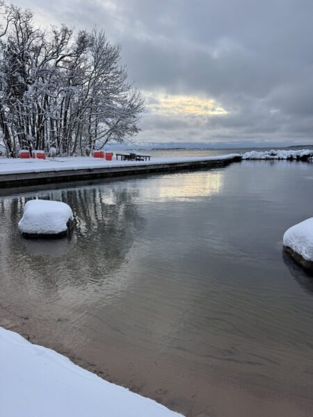 Jag pulsade uppför den lilla grusvägen förbi alla grannars hus och svängde av mot stranden. Det var rejält jobbigt eftersom jag fick kämpa med varje steg i snön. Att vägen hade plogats så sent som igår märktes det inget av.