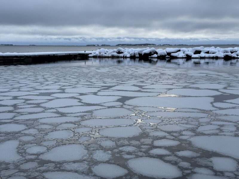 Jag vågade inte riktigt gå in i skogen och gå längs med stranden eftersom det hela tiden föll grenar, eller stora sjok av snö.
