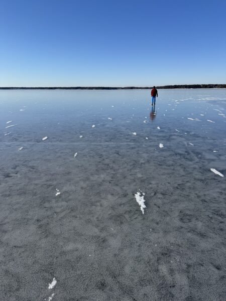 Man hör hela tiden hur det ”swishar” där ute. Det är folk som åker skridskor.