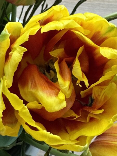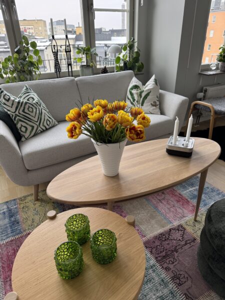 Tulpaner blir verkligen vackrare och vackrare efter att de kommit i vatten. Buketten Per köpte sprider glädje!