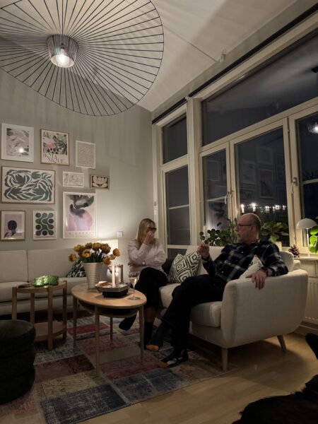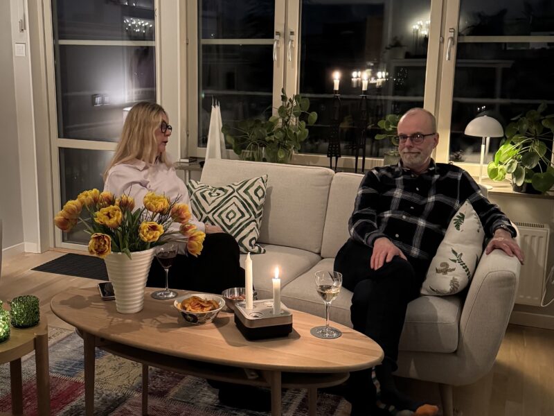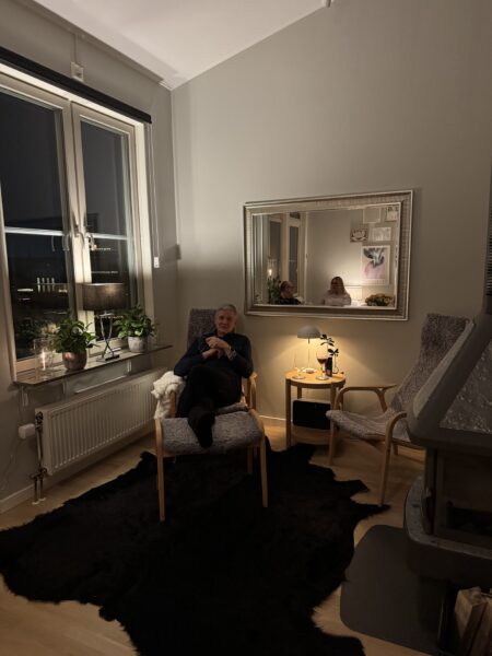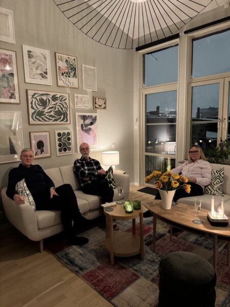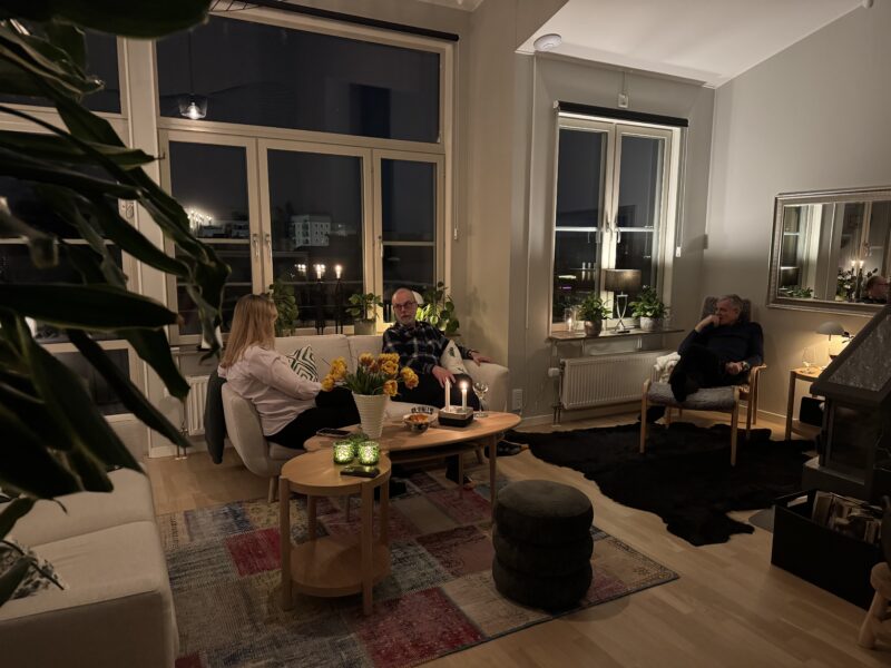 De hade aldrig varit hemma hos oss (uj uj vi som bott här i tre år…) så först tog vi en liten ”guidad tur” och sen tog vi lite bubbel i sällskapsrummet.