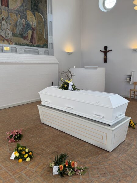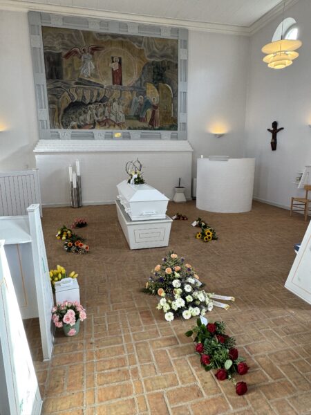 Sedan åkte vi till det stora kapellet där begravningen för min faster Marianne skulle äga rum.