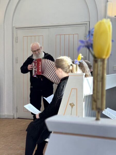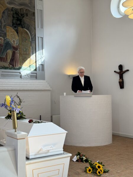 Officianten/bedemanden höll tal och berättade om min fasters liv. Vi sjöng flera sånger och Finn spelade dragspel.