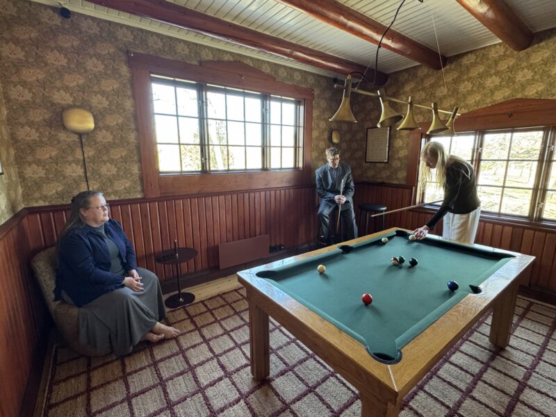 Min systerson Anton och svåger David tog sig an ett parti biljard.
