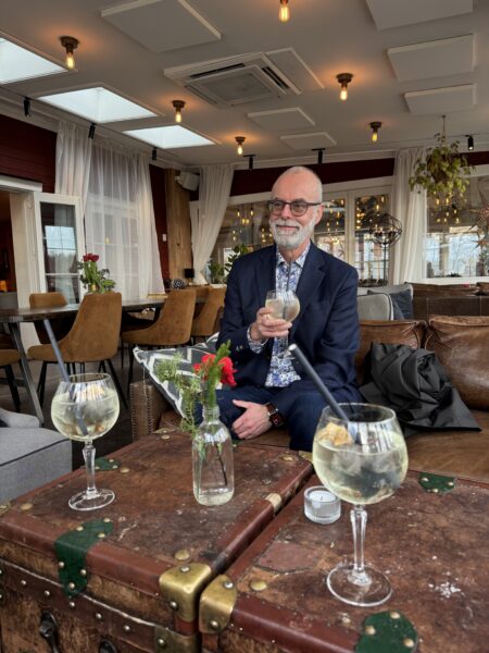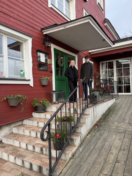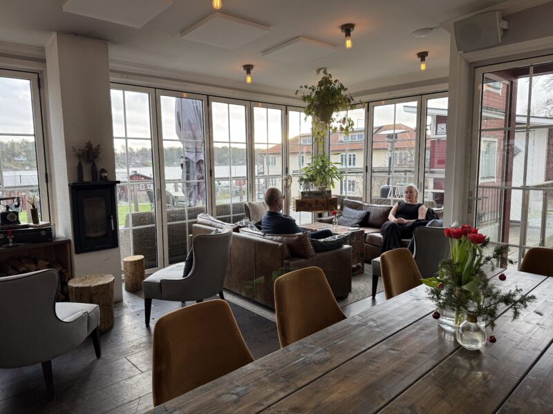 Vi hade en timme kvar till vår sittning skulle börja så vi satte oss ute i punschverandan och tog det lugnt.