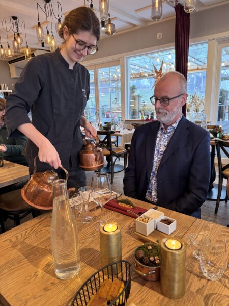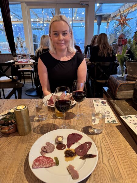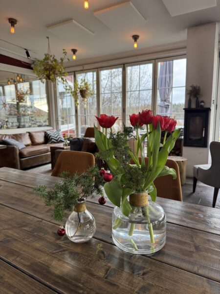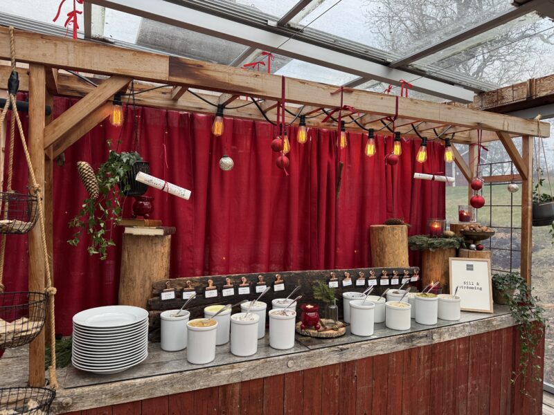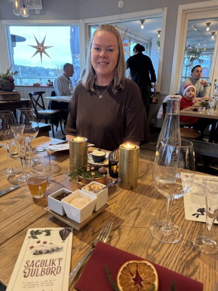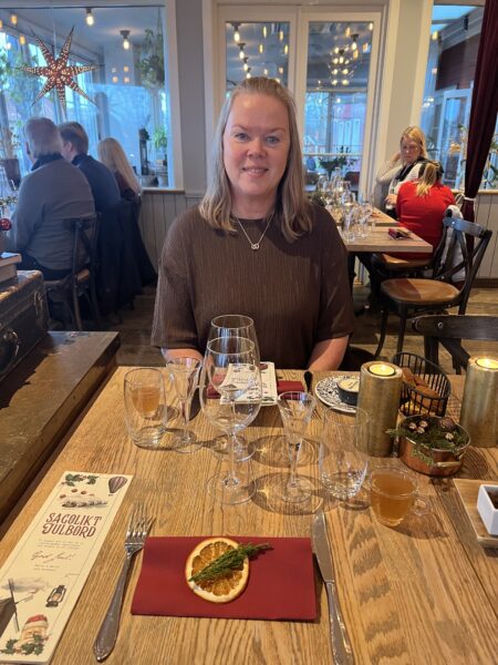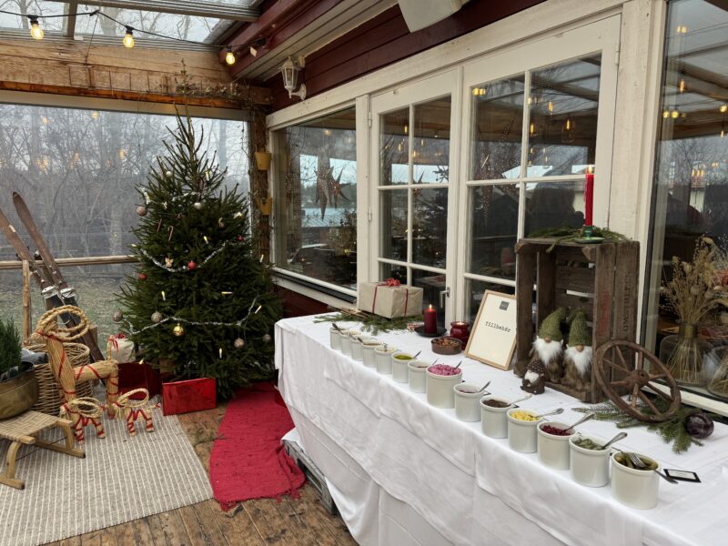 Klockan 13 satte vi oss till bords och vi bjöds först på ett glas glögg och en härlig förklaring av hur de tänkt sig sitt julbord och var vi kunde hitta allting.