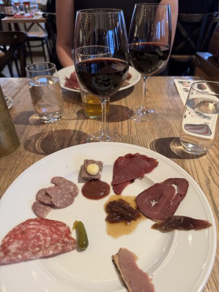 Tredje tallriken blev kallskuret i form av vildsvin, hjort, anka och nöt. Jag passade på att ta en bild på både tallrik och dotter!